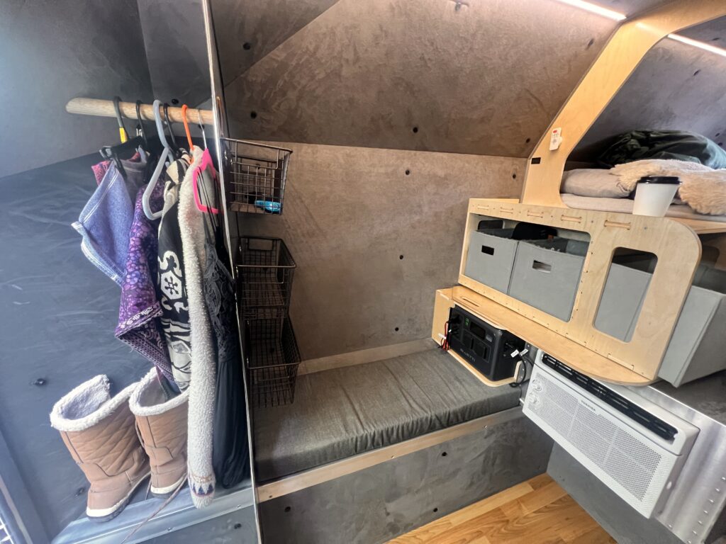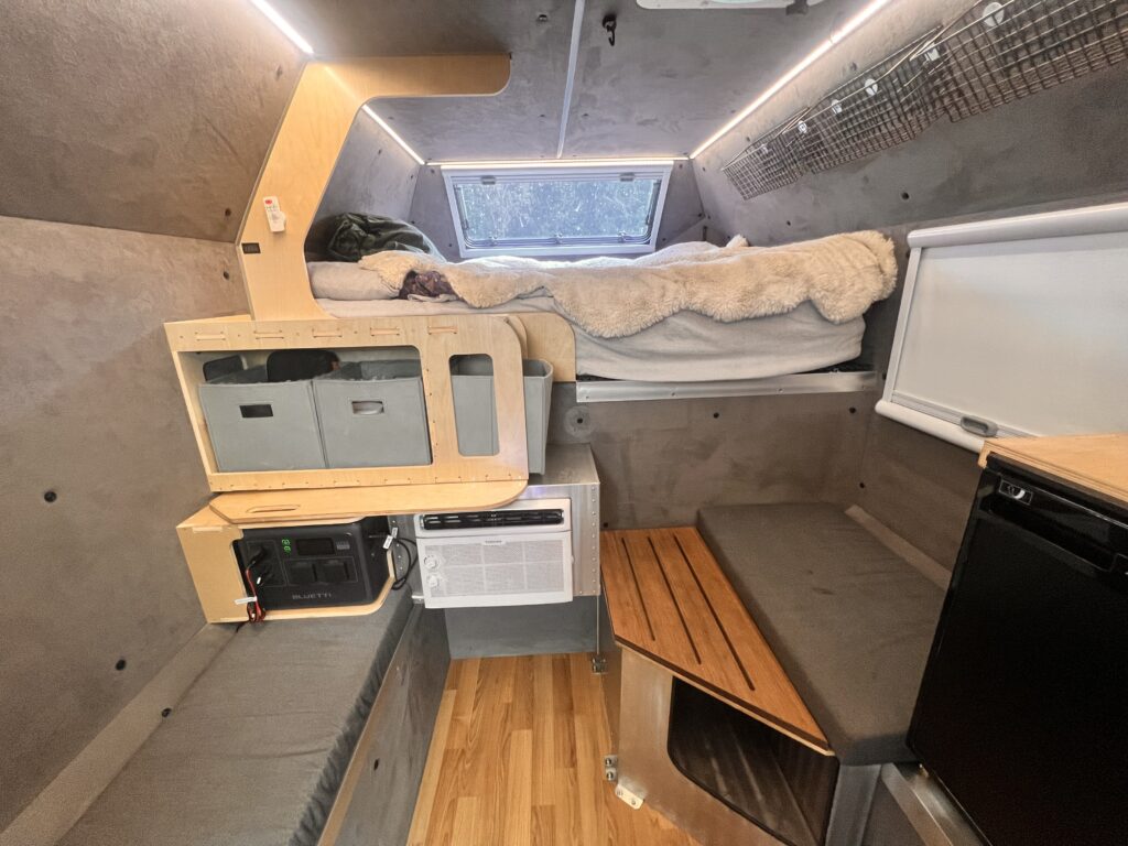 Self-Sufficient Luxury – Indoor shower, sink, Dometic fridge, and a full-size bed to crash after a long day outside.