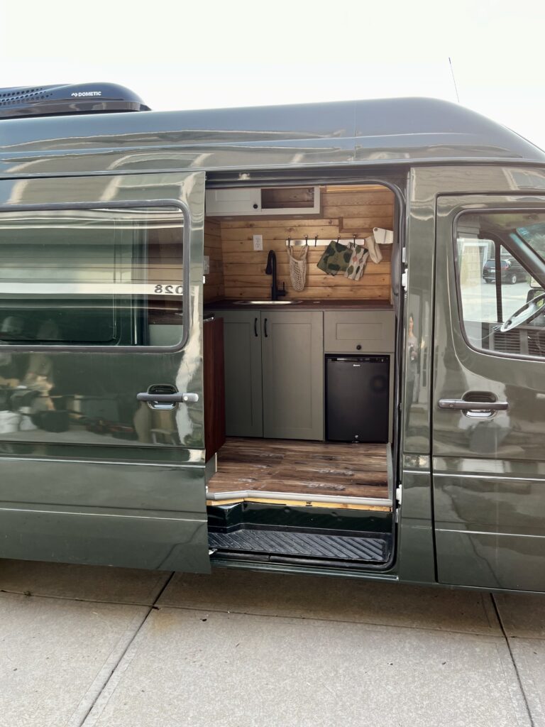 Comfortable walkable interior built for van life or remote work.