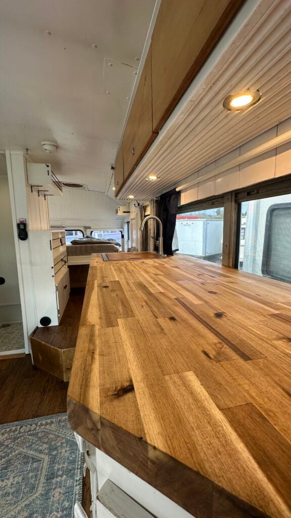 4×4 Off-Grid Adventure Ready 2001 Ford E-350 Bus This 2001 Ford 7.3 Powerstroke Diesel E-350 short bus is ready to take you on your journey. My full time adventure has come to an end, just in time for your’s to begin. Off-grid ready with U-joint 4 wheel drive conversion with lift to take you anywhere. Stay warm year round with diesel heat. Enjoy hot showers with 12V water heater and Adjustable thermostatic shower valve for consistent water temperature. Stand tall in the bathroom and front living area with 6 ft+ ceilings. True four season with no external tanks to freeze in sub-freezing temperatures Composting toilet, sanitized and ready for use. Lots of inside cabinet space, spacious storage under the bed and outside access to large garage. Feature highlights: 400W solar on top 440 AH lithium batteries, 2 years old in the house 2000W inverter Renogy solar charger Autoterm Air 2D Diesel heater-this is no Chinese knock off.Tapped into the fuel tank Autoterm 12V water heater 40 gallons fresh water 7 gallon jug to collect grey water under the sink Composting toilet Large capacity Domestic fridge/freezer Full sized spare tire Max air Fan LED lighting through out Butcher Block counter Recent upgrades: Entire front end re-built in 2024 New radiator, hoses and water pump in 2023 Brake pads February 2024 Transmission serviced 2025 Oil and filter change December 2025 Less than 2,000 miles on all 6 tires Foam cushion replaced on driver’s seat. 275,000 Miles-just a baby in terms of this “Million mile” engine. Registered and insured as a motor home in South Dakota