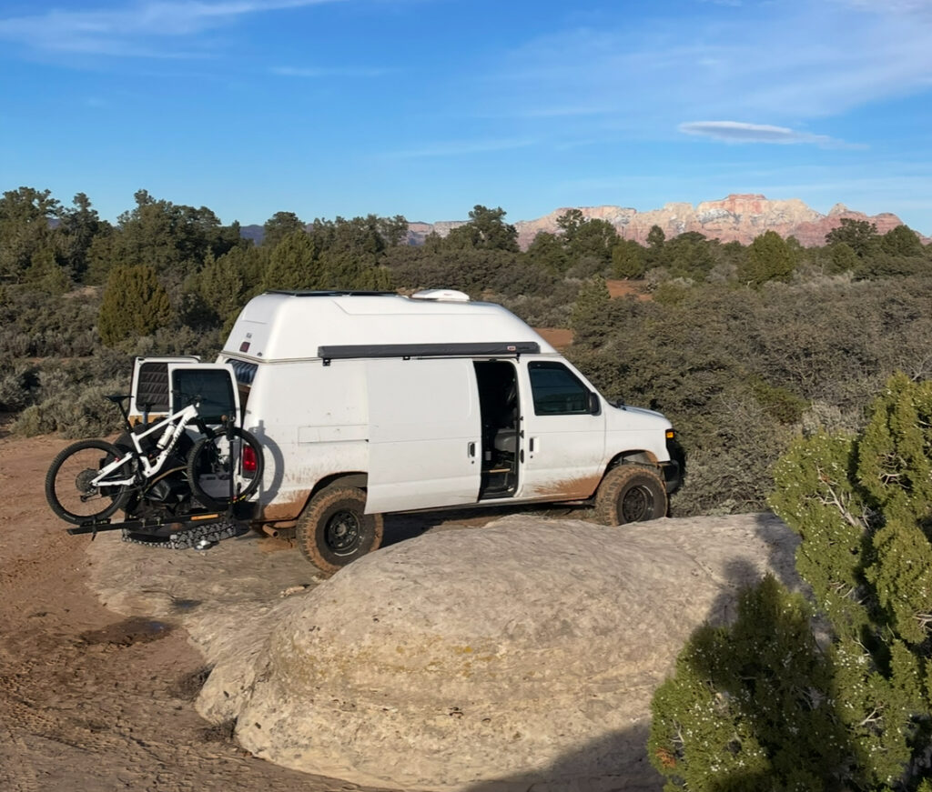 Wasatch Overland High Roof (6′ tall and can stand inside) Van height is 9’6”