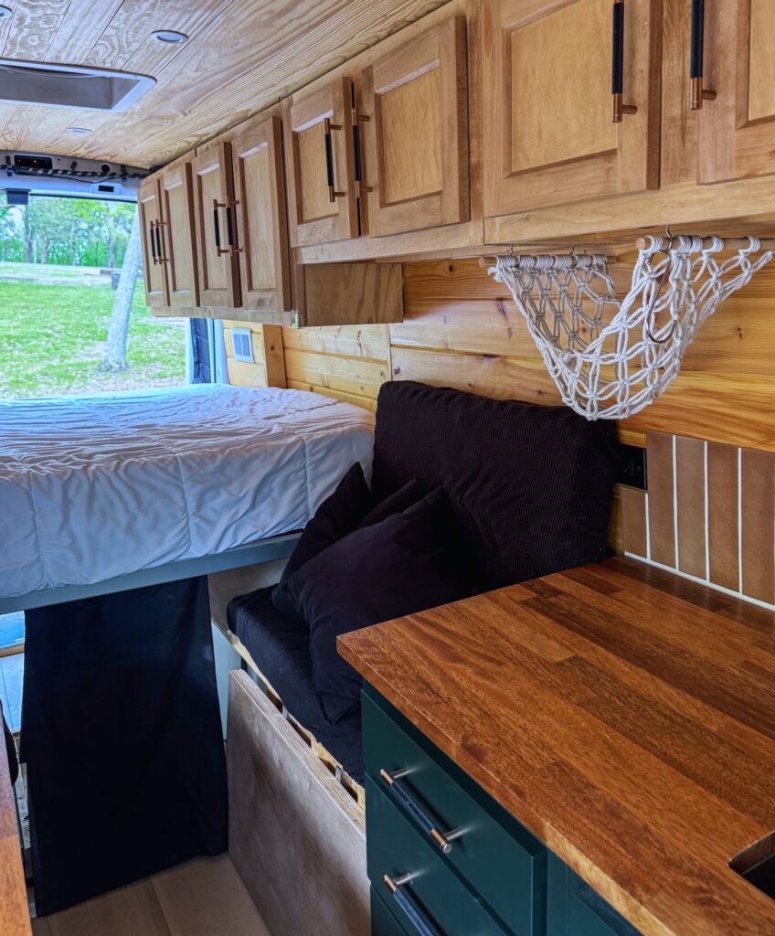 Included: Queen bed + foldout sofa bed – lots of built-in storage