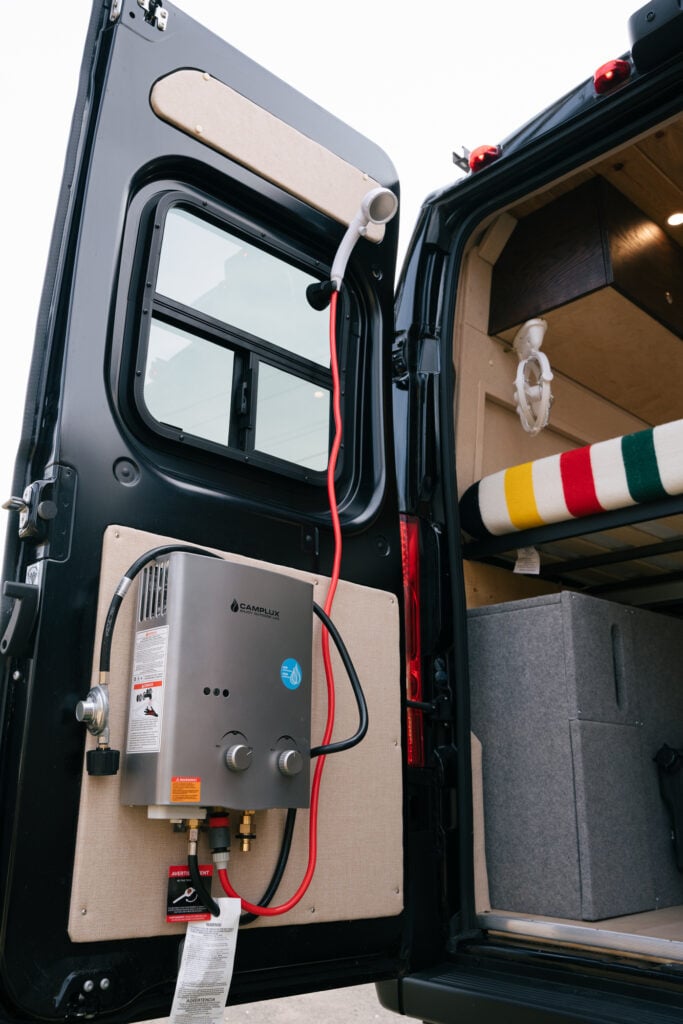 • Outdoor hot water shower (Camplux tankless water heater with 5 lb propane tank)