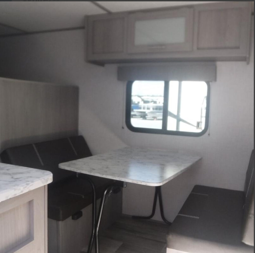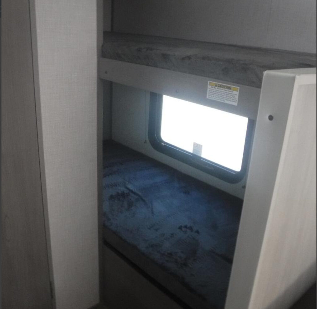 Features include rear bunk beds for the kids and a queen-size bed up front. Clean and well cared for, and everything works as it’s supposed to—ready to camp right away.