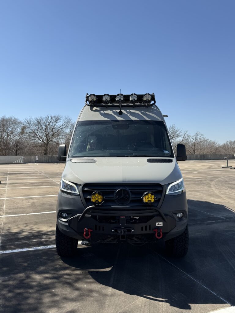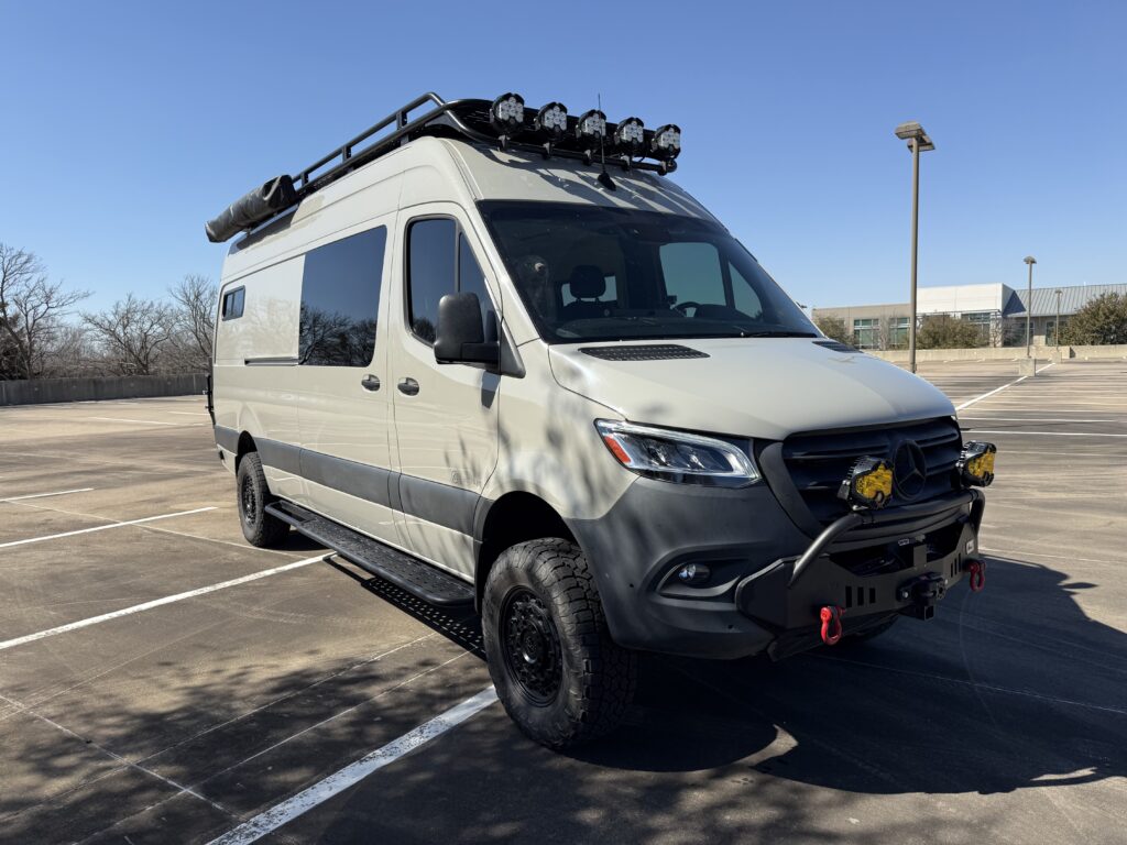 This van is ready for adventure.  Complete detailed list available upon request.  Exterior highlights: Agile off-road ride improvement kit (RIP kit) is a game changer for on and off road handling.  7 LP6 Baja design lights, Safari rack, ladder, rear tire carrier, owl vans storage box with shovel,  Black Rhino wheels wrapped with Toyo open country tires.  Tech: 540 amp hour BattleBorn lithium battery set up with a Victron 3000w inverter, full roaming Starlink, WeBoost cell booster.  Interior: queen bed, Dometic fridge freezer,  sink, counter space and removable table.  Mechanical: RIP kit wagon 2.0’s, 46 gallon fuel tank with improved MBZ filler neck, under armor underneath. Van is ready to roll.   Don’t miss this amazing deal!