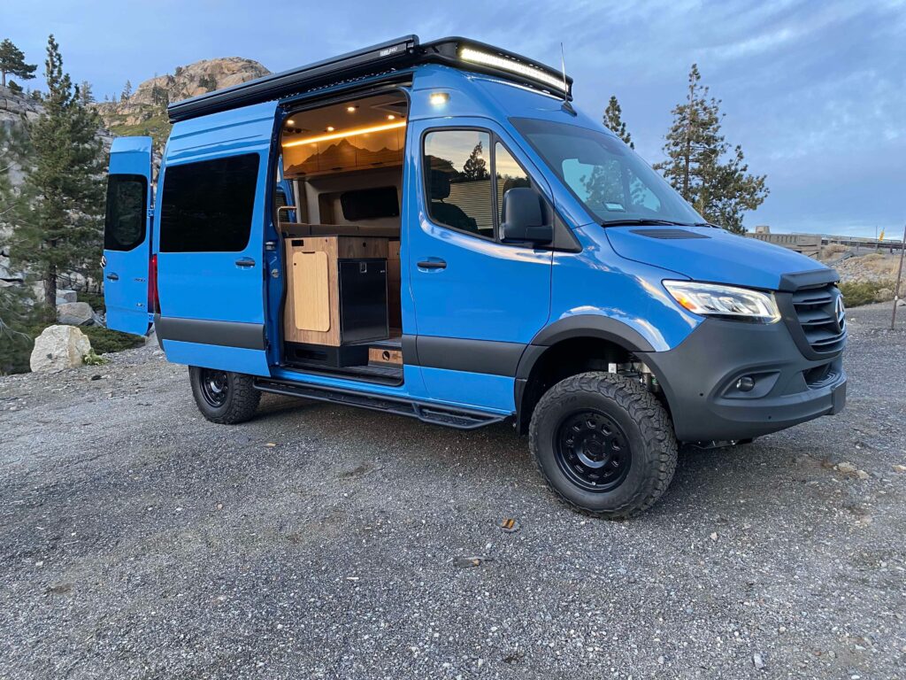 2024 Mercedes-Benz sprinter van custom built by Wolf Mountain Vans in Grass Valley, California. 4 cylinder high output diesel makes more HP than the previous generation 6 cylinder while getting better MPG. It’s an amazing motor. 16k miles. Van is AWD with the Falcon 3 way adjustable shocks. Details of build are in last pic. All cabinetry was hand crafted by a custom yacht builder who takes great pride in his work. Incredible build quality.