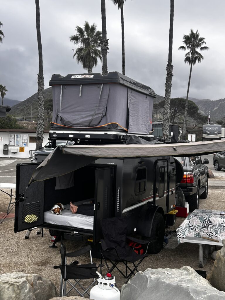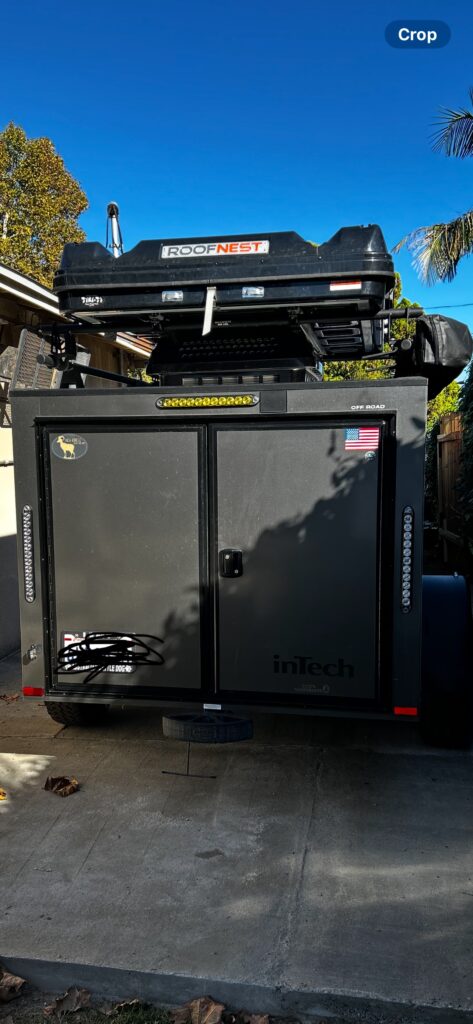 Excellent little trailer easy to tow has a  Roof nest, Trifold memory mattress upgrade ,bug screens, off road upgrade , Full OVR awning, Hundred watt solar built-in with inverter dual batteries ,tires are real good shape. Trailer brakes, 30 amp power cable, Intech full cover. Before the roof top tent, we had a garage and after that we had it covered so it’s never been exposed,haven’t used it that much ,short trips .