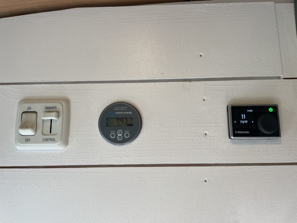 Heater: Webasto air top. Plumbed directly to vehicle fuel tank. Has a programmable timer/thermostat so you can preheat the van before heading back for lunch after a powder-packed morning of skiing! (professionally installed by PAD in Scappoose)