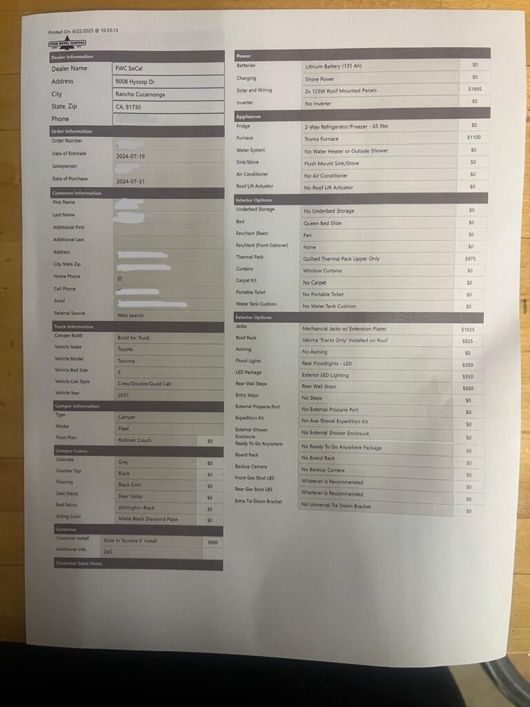 Sits on 2021 Toyota Tacoma TRD Truck with 6ft bed. Truck purchase optional.