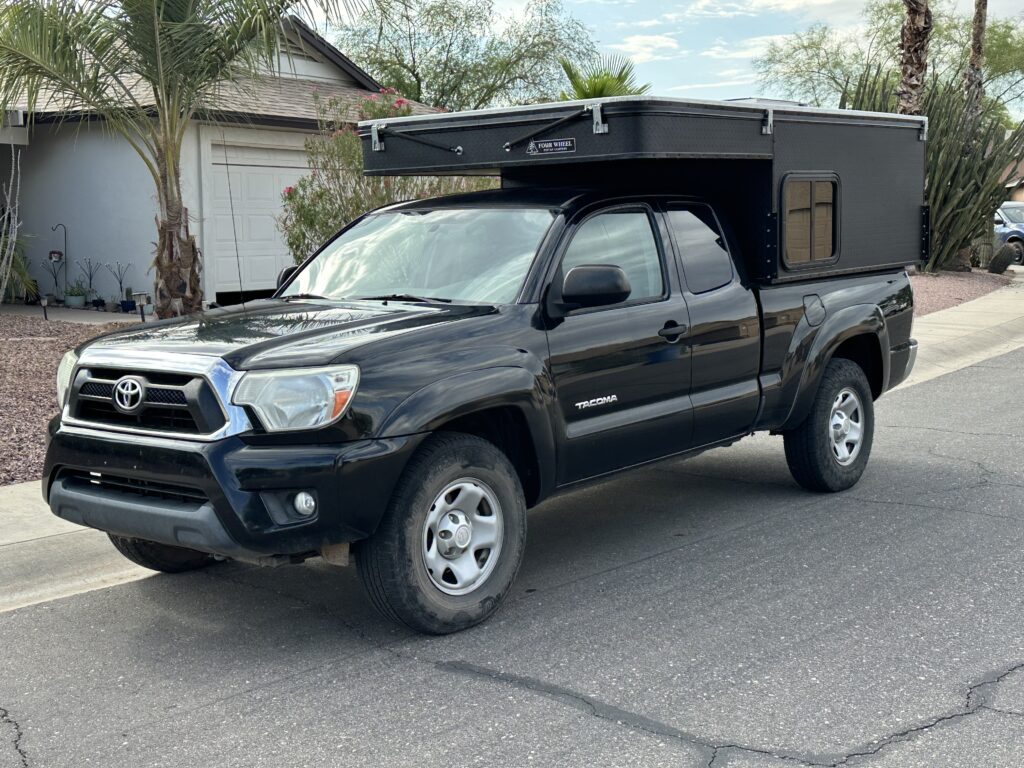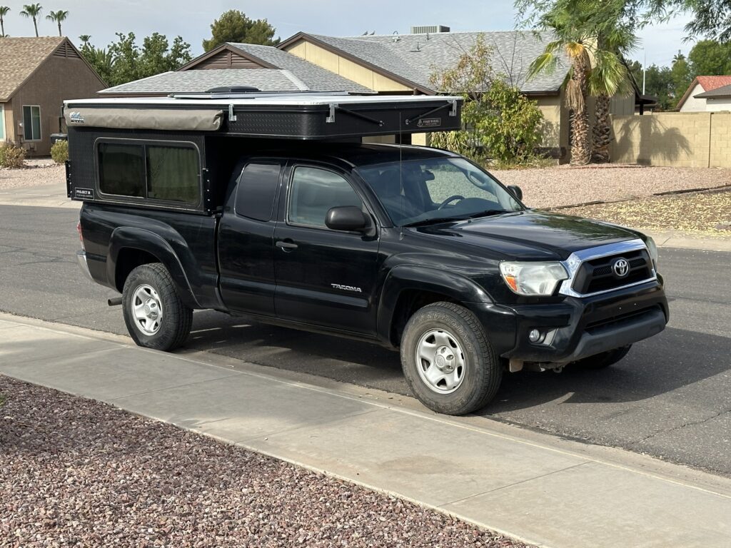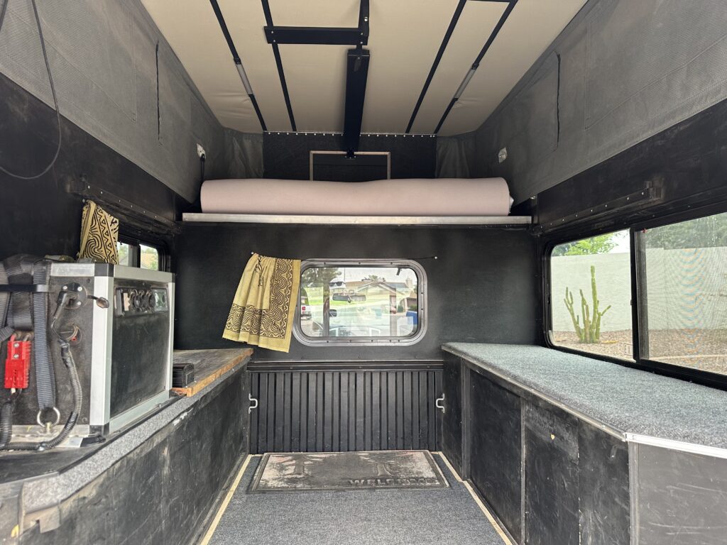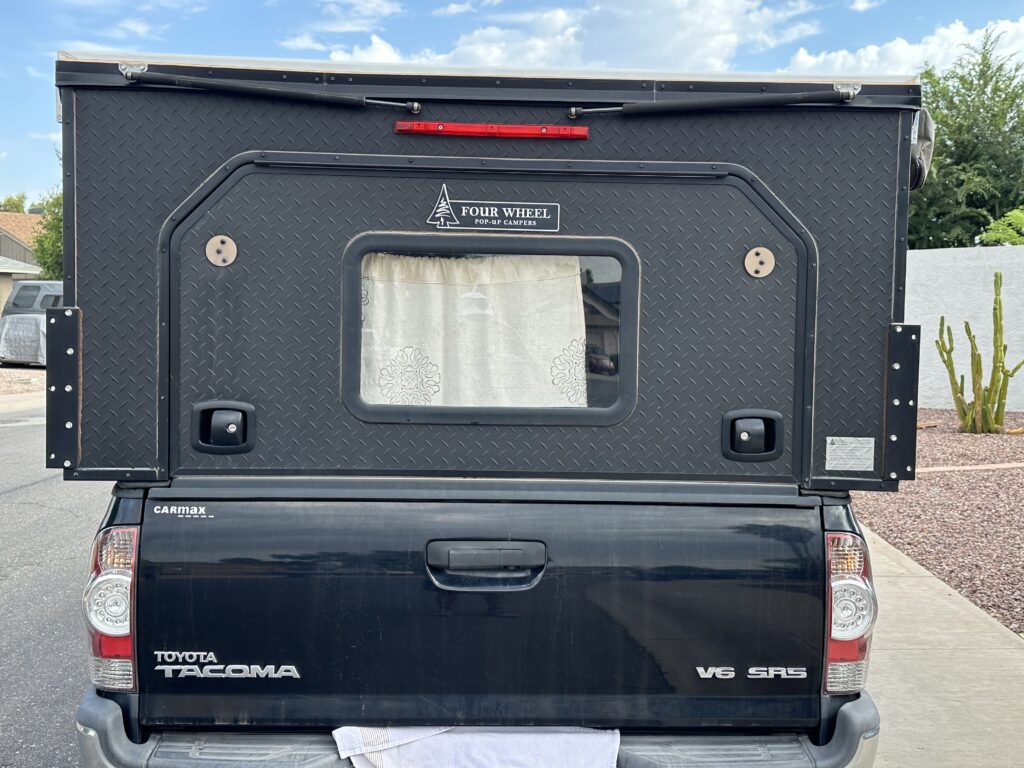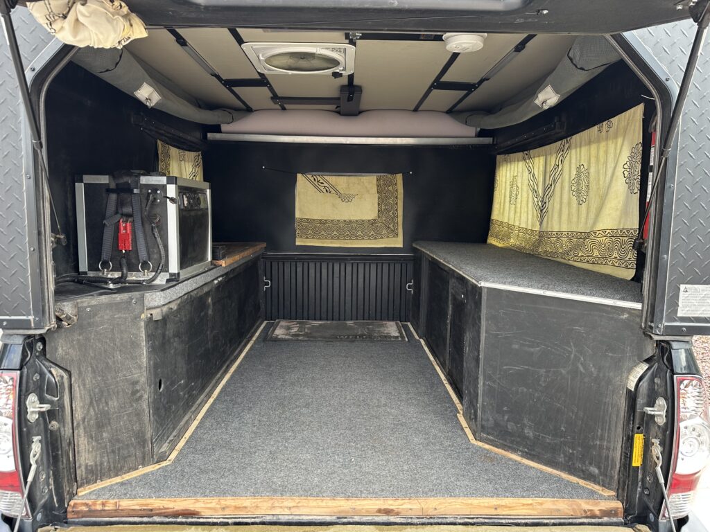 Four wheel campers project M For a midsize truck with a 6 foot bed. Roof vent with powered fan. 6 foot side awning with awning enclosure. Quilted thermal pack. Window curtains. Large passenger side window. Solar panel and battery system. Custom inside build with storage included.