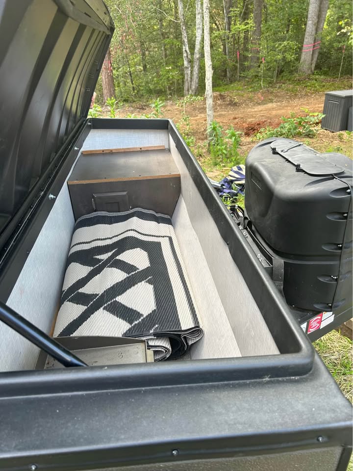 • 20-gallon fresh water tank, antifreeze bypass, double battery box & wiring, electric brakes, EZ-lube axles, black diamond plate, stabilizer jacks with sand pads