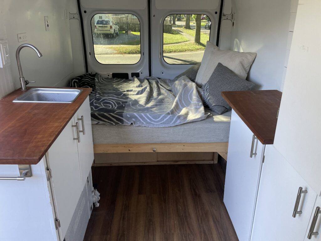 Custom camper van I built out myself. Lived in it full-time with my dog for a year while working remotely, but sadly my job is no longer remote and it’s time to move on. This van has very comfortably gone cross country many times with zero maintenance problems, and has spoiled me for any future road tripping. It’s fully off-grid with solar and alternator charging so you never have a need to find shore power. Cellular booster is included for improved service off grid if you need to remain connected for work. I upgraded the tires and it easily handled high-clearance roads, mud, snow, mountain driving.